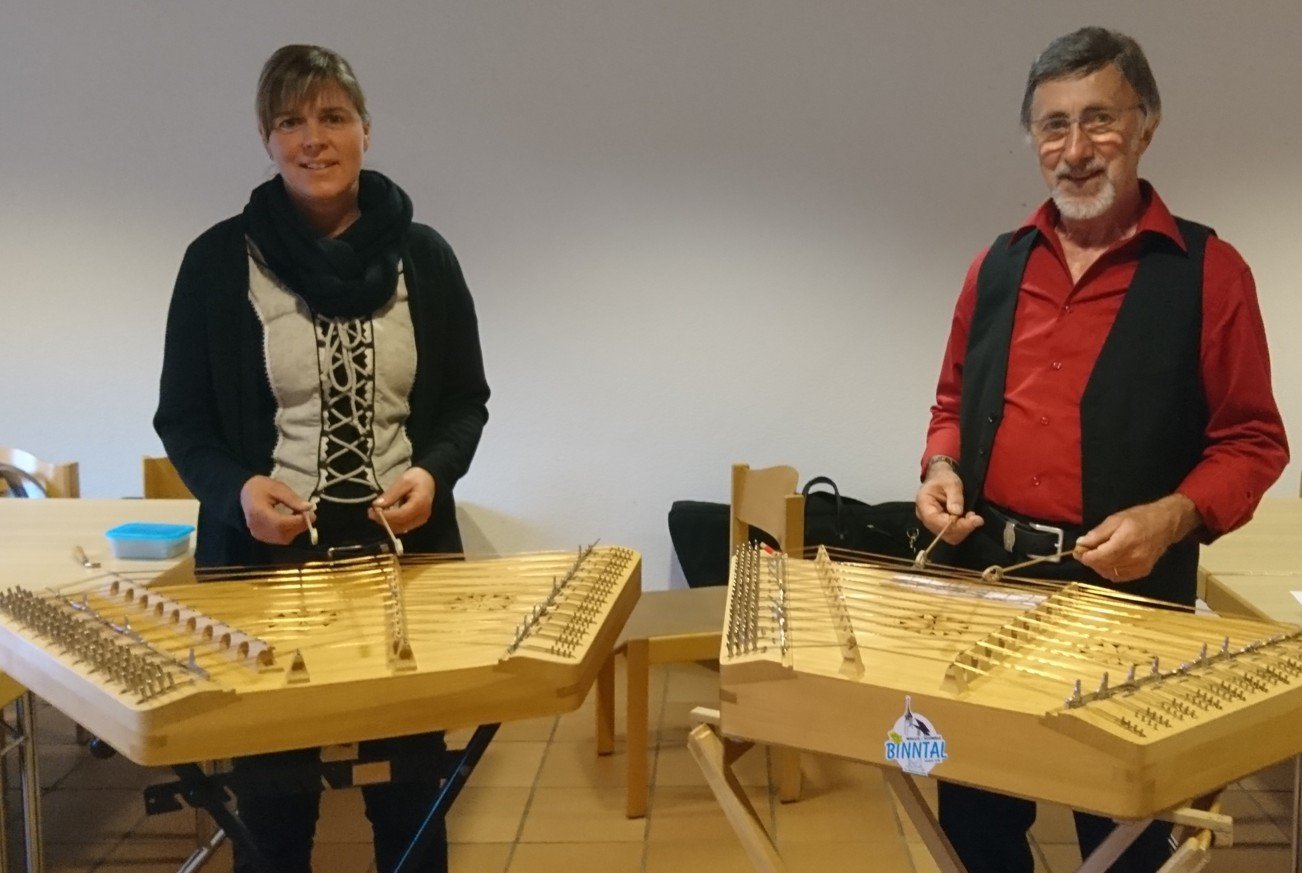 Apéro und Nachtessen werden musikalisch umrahmt von zwei Mitgliedern der «Hackbrättgruppa Oberwallis». Sonja Imstepf und Beat Tenisch spielen traditionelle und neue Melodien, an denen der heilige Valentin wohl auch seine Freude hätte.